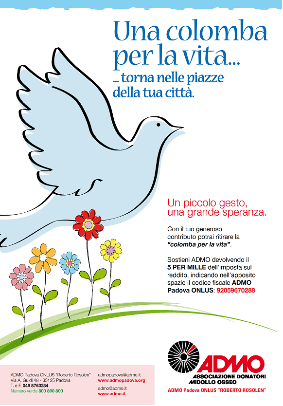 Per conoscere le piazze delle colombe per la vita 2016 è possibile consultare il sito www.admopadova.org oppure telefonare al numero 800 890 800; o ancora acquistare le colombe presso la sede dell’associazione in Via Guidi 48, telefono 049 8763284.