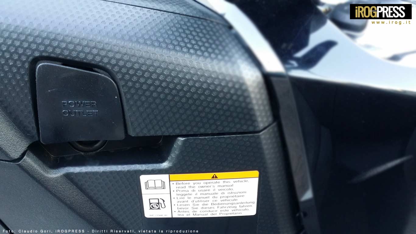 Una ergonomica presa da 12v è disposta alla sinistra della guida, in comoda posizione per alimentare uno smartphone, tablet o navigatore satellitare e raggiungere qualsiasi destinazione montana, marittima o lagunare.