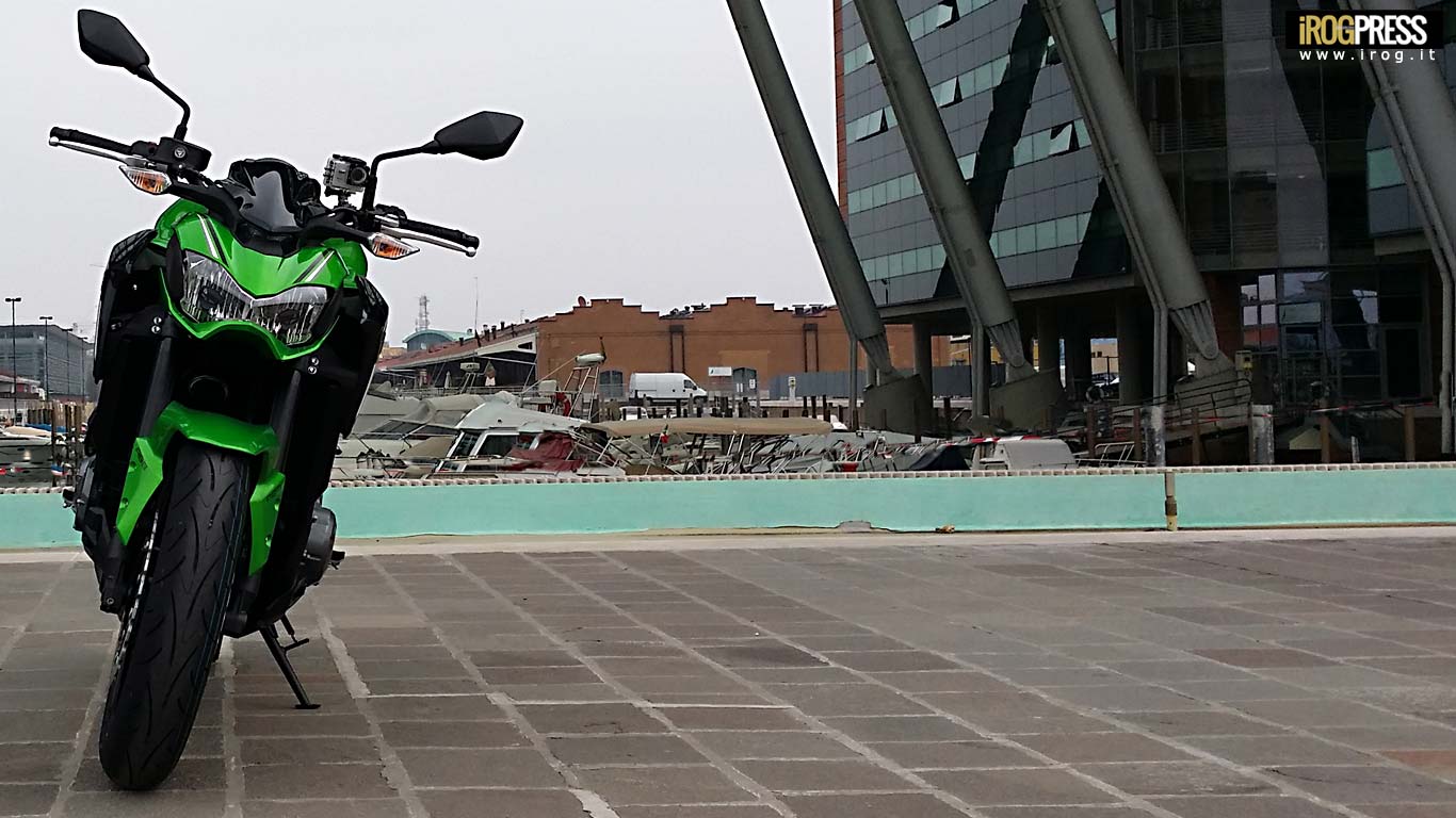 La Kawasaki Z900, splendido esemplare di supernaked, da subito è risultata aggressiva e docile al contempo, prendendo confidenza con la manopola del gas e l’invidiabile delicatezza sportiva del nitrito , pulsando l’istintiva necessità di sbrigliarla per prestazioni esaltanti in qualsiasi impiego. La Kawasaki Z900 è motoristicamente dotata e l’intenzione è stata impegnarla da subito in autostrada, poi per le vie cittadine di Mestre ed al fianco delle meravigliose sponde d’una invidiabile città d’arte impregnata d’una storia d’eccellenza: Venezia. Un senso percepito di rispetto ed onore di due consonanti attigue, quasi la Z venisse in successione dell V di Venezia che una Z la include nel suo nome; un casuale amalgama che non lasciava scampo d’ambientamento: la Kawasaki Z900 meritava il contrasto armoniale tra design motoristico e design moderno, storia d’esclusivo spirito sugomi e permeante potenza marinara d’impulso futuristico.