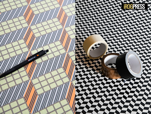 La collezione è composta da 10 decori, declinati in diverse varianti cromatiche, realizzati in Re-Abet, un laminato decorativo con una componente di carta kraft 100% riciclata certificata.