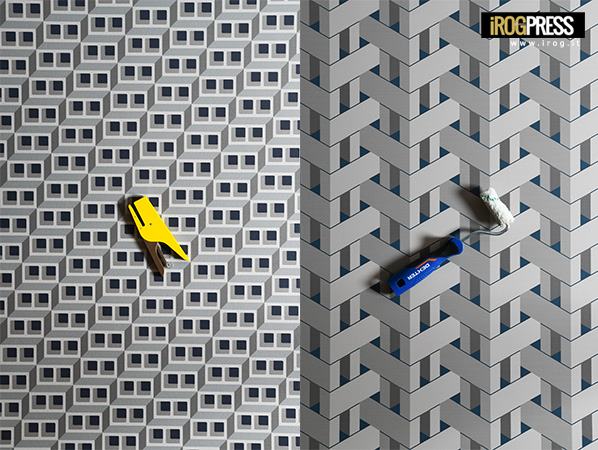 Gli elementi che caratterizzano i cantieri edili e stradali, selezionati per essere riprodotti nei pattern destinati alla superficie del laminato, sono: la tavella di laterizio, il blocco di cemento, il tubo, il pallet, il nastro segnaletico, il segnale stradale della deviazione, il segnale di corsia chiusa, il segnale di stop, la rete arancione da cantiere.