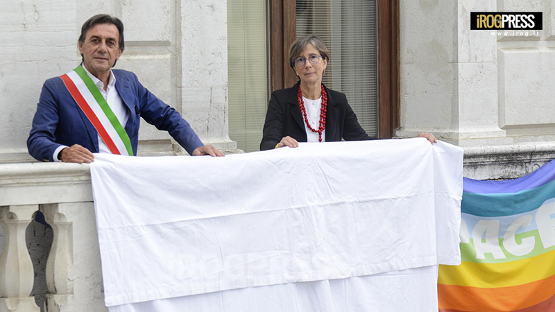 Per questo questa mattina il sindaco Sergio Giordani e l’assessora alla pace Francesca Benciolini hanno esposto alle finestre di Palazzo Moroni un lenzuolo bianco, che ricorda i sudari utilizzati in Medio Oriente per avvolgere i corpi dei defunti.