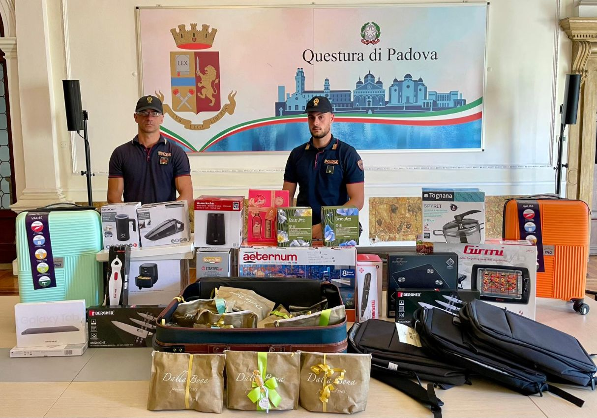 Gran parte del materiale rinvenuto nel corso del controllo è risultato poi essere provento del furto aggravato commesso nella stessa notte ai danni dell’oratorio di San Giuseppe, nella parrocchia di Turri – Montegrotto Terme (PD), dove erano stati rubati piccoli elettrometrici, oggetti elettronici e generi alimentari destinati alla pesca di beneficenza, mentre sono tutt’ora in corso accertamenti per risalire ad eventuali altri furti commessi dalla coppia.