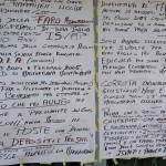 I manifesti appesi riportano forti denunce e accuse, rassicurando amici e clienti che l’assenza di alcuni giorni non era dovuta a salute cagionevole o peggio a malattie gravi: “Mi hanno sospeso la consegna dei giornali ed allora mi sono arreso!”; una resa quasi mortificante per chi ha lottato una intera vita per mantenere decorosamente la propria famiglia e seguire principi e valori in cui crede. “Non accetto più ricatti e intimidazioni!“, prosegue il testo di un manifesto scritto manualmente con un pennarello e accusando quanto segue: