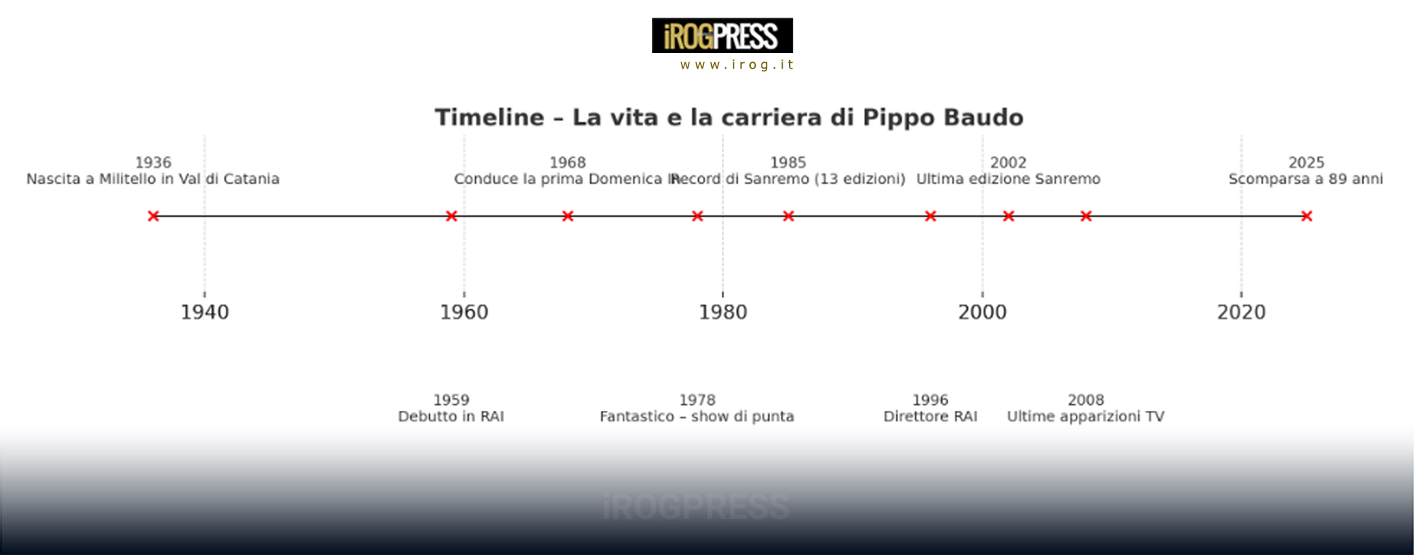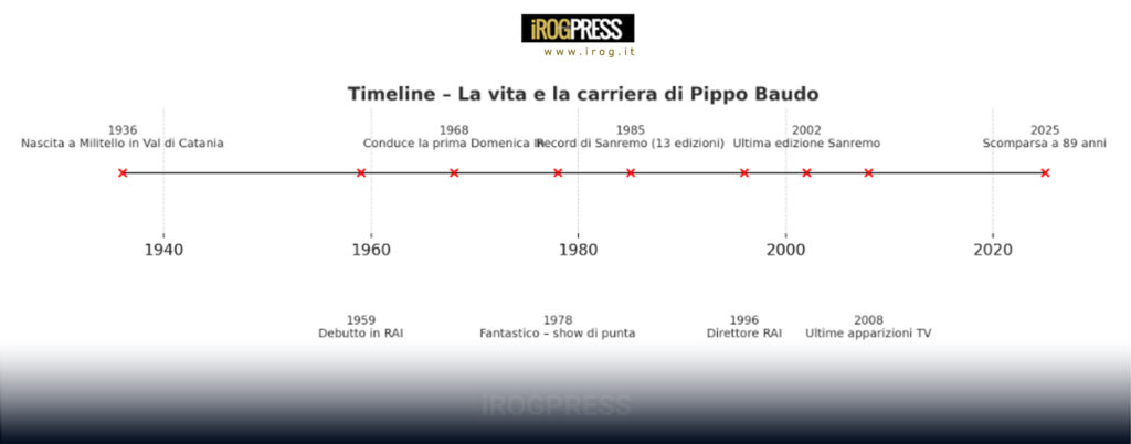 Baudo era il volto dietro programmi iconici come Domenica In, Fantastico e Canzonissima, e ha condotto ben 13 edizioni del Festival di Sanremo — record per un solo presentatore. Il pubblico lo chiamava affettuosamente “Superpippo”.