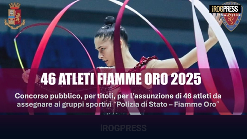 È stato pubblicato il bando di concorso pubblico, per titoli, per l’assunzione di 46 atleti da assegnare ai Gruppi Sportivi Fiamme Oro della Polizia di Stato. Il concorso è stato indetto con decreto del Capo della Polizia del 16 dicembre 2025.