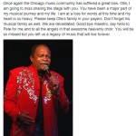 Un infarto ha colto di sorpresa l’icona del Soul & Blues Otis Clay: nato l’11 febbraio 1942 a (Waxhaw, Mississippi/USA), è mancato lo scorso 8 gennaio 2016 (Chicago, Illinois/USA) all’età di 73 anni.