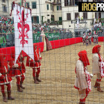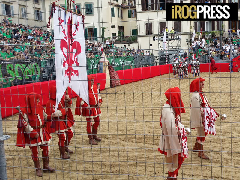 Il corteo storico della Repubblica Fiorentina è partito da Piazza Santa Maria Novella, per giungere sul Sabbione; raffinati i colori in abito e corazze d’epoca, Gonfalone del Corteo scortato dalla Famiglia di Palazzo, nel quale è rappresentato il Giglio rosso in campo bianco sottoscritto da Fiorenza. Una immagine di Firenze nobile e storicamente legata a tradizioni popolari e alla vita dei fiorentini. Il Giglio rosso su sfondo bianco rappresenta il fiore Iris Florentia, alquanto diffuso nelle campagne fiorentine d’allora.