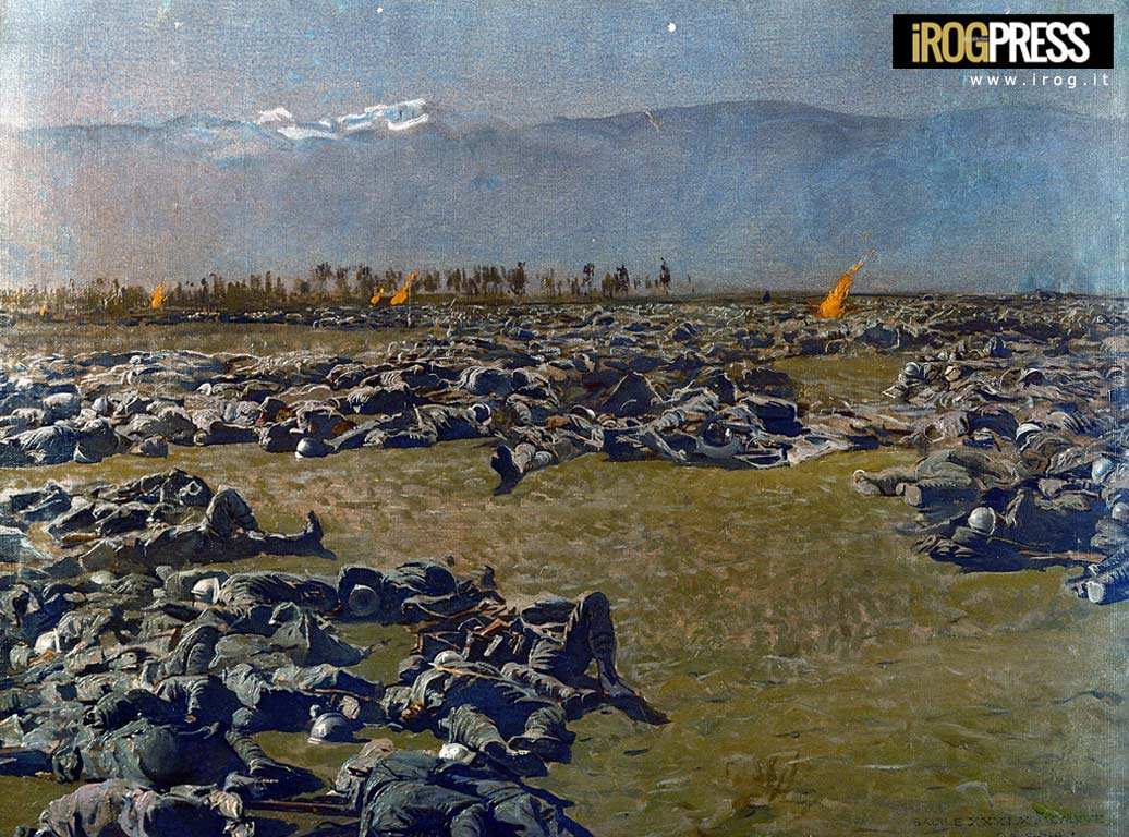 Ampliano la prospettiva dell’esposizione quindici dipinti di Giulio Aristide Sartorio, facenti parte dell’ampia collezione del Ministero degli Affari Esteri, realizzati tra il settembre 1917 e il giugno 1918 sulla base di scatti fotografici e di rapidi schizzi colti dall’autore sulla linea del fronte. Opere che conservano la freschezza e l’immediatezza dell’immagine fotografica da cui traggono origine.