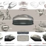 FLÒ – Ispirata al falò, Audi Flò rappresenta una nuova idea di trasporto. La forma ellittica stimola le persone ad interagire tra loro e riscoprire il piacere della convivialità. L’uso di materiali a memoria di forma, consente la trasformazione dei sedili per creare un’atmosfera adatta al viaggio: un’auto per quattro o un salotto per due con un ingombro ridotto. Confondendo i confini tra design automobilistico e di prodotto, il corpo avvolto intorno alla cabina crea una vettura unica. Eliminando la convenzione di zona anteriore e posteriore, Flò è progettata per essere bi-direzionale.
