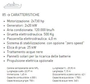 > EFFICIENZA IDRODINAMICA della carena semiplanante che richiede motorizzazioni di potenza limitata, garantendo consumi, emissioni e costi di manutenzione molto contenuti.