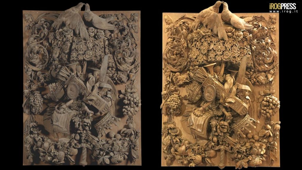 Dopo un lungo e accurato restauro eseguito nei laboratori dell’Opificio delle Pietre Dure, rientra a Palazzo Pitti il virtuosistico intaglio ligneo di Grinling Gibbons, donato da Carlo II d’Inghilterra a Cosimo III de’ Medici e eseguito tra il 1680 e il 1682.