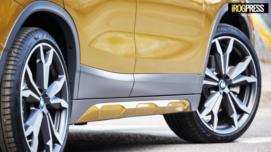 La BMWX2M SPORT è il primo modello con ulteriori finiture distintive nei pannelli di copertura nel colore caratteristico. La versione M SPORT-X rappresenta la novità assoluta. Se M SPORT richiama il mondo delle corse, M SPORT-X è ispirata ai rally. Infatti, M SPORT-X con i fascioni paraurti che esaltano chiaramente il carattere off-road della BMW X2, rappresentano un’importante innovazione all’interno della gamma X. Il caratteristico colore “Frozen Grey” del posteriore e dell’anteriore, richiama il mondo del rally con i suoi contrasti creati dalle tipiche dotazioni. Vista di profilo, la tonalità leggermente più chiara fa sembrare la posizione dell’auto più elevata sulla strada rendendo il pacchetto M SPORT-X altamente distintivo.