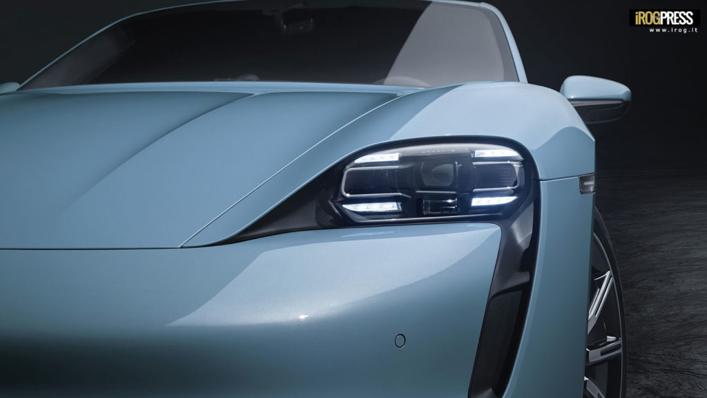 Con il suo profilo ‘pulito’ d’ispirazione puristica, la Taycan simboleggia l’inizio di una nuova era mantenendo al contempo l’inconfondibile DNA stilistico di Porsche. Frontalmente, il profilo della vettura risulta particolarmente largo e piatto, con parafanghi dalla sagoma pronunciata. La silhouette è caratterizzata da una linea del tetto sportiva che si inclina nettamente verso il basso sul posteriore. Un altro tratto caratteristico è costituito dalle sezioni laterali molto scolpite. L’abitacolo filante, il montante C ridotto e le spalle pronunciate dei parafanghi creano un effetto che enfatizza nettamente la sezione posteriore, come è tipico del Marchio. Ci sono poi elementi innovativi come, ad esempio, il logo Porsche dall’effetto vetro, che è stato integrato nella barra luminosa posteriore.